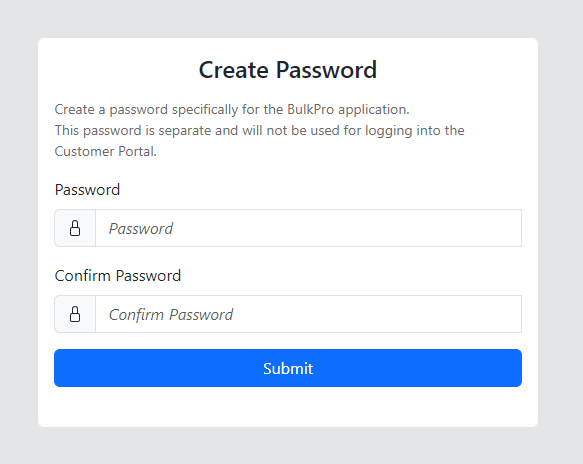 Note: This password is specific to the BulkPro application and is separate from your RapidDox Customer Portal password.