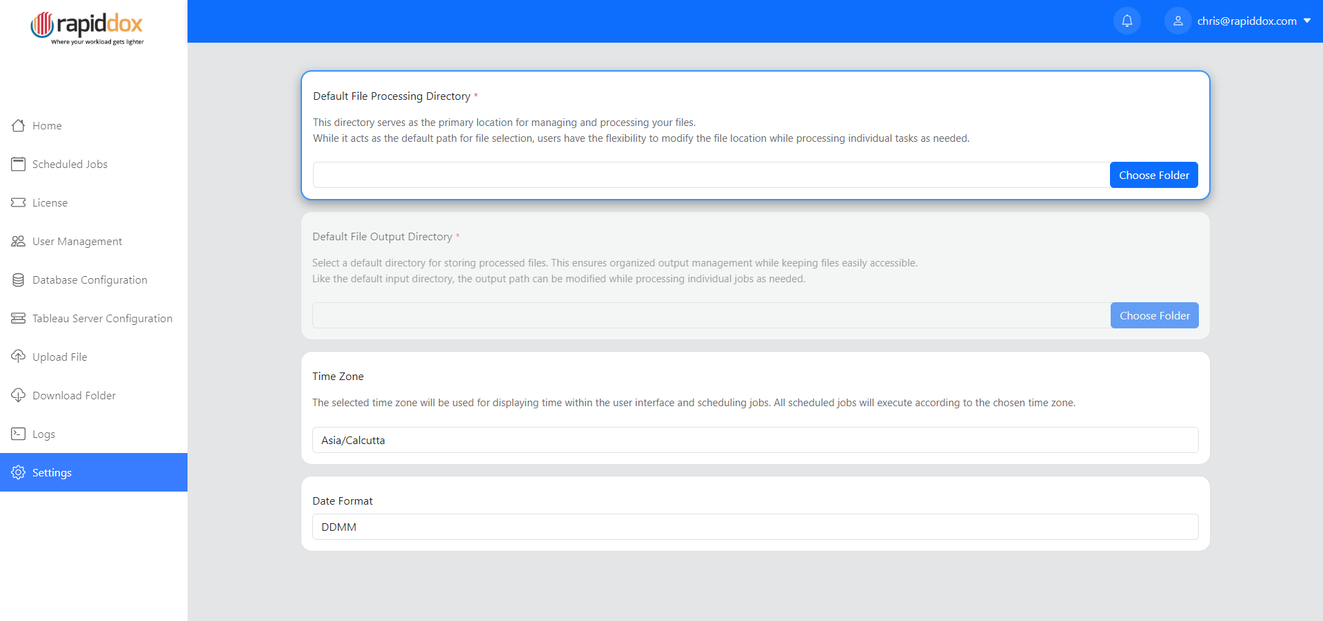 Like the default input directory, the output path can be modified while processing individual jobs as needed.